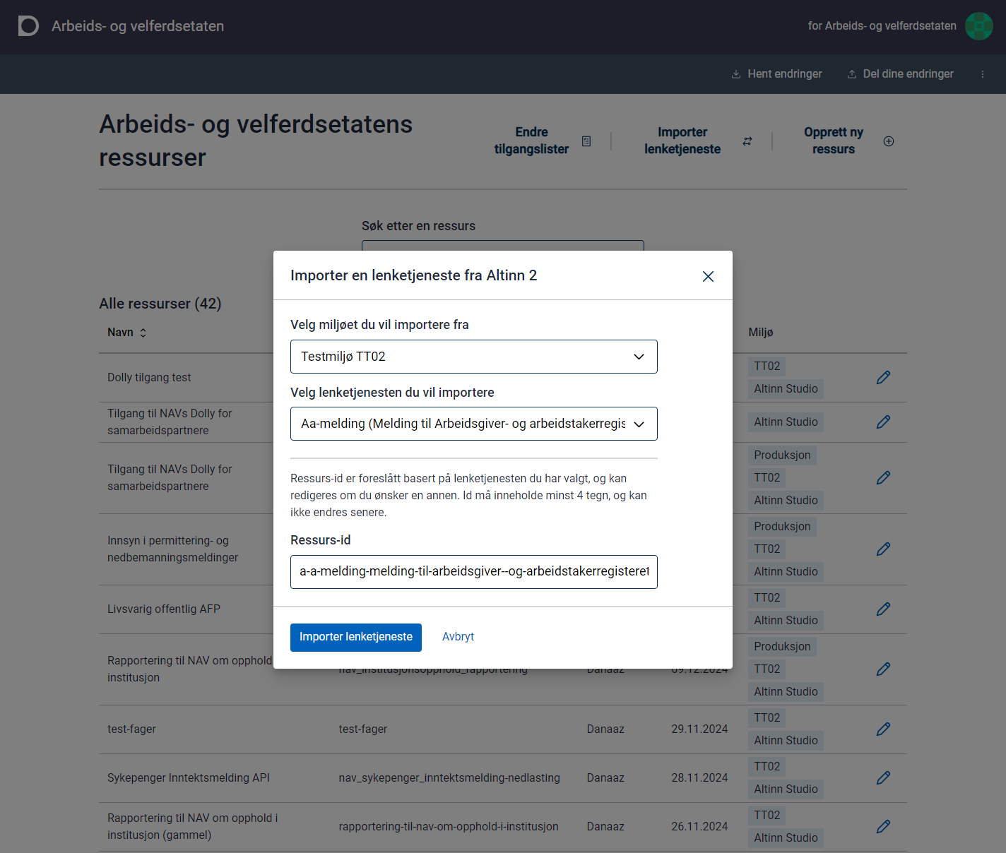 Altinn Studio lets you create new resources based on those linked services.
