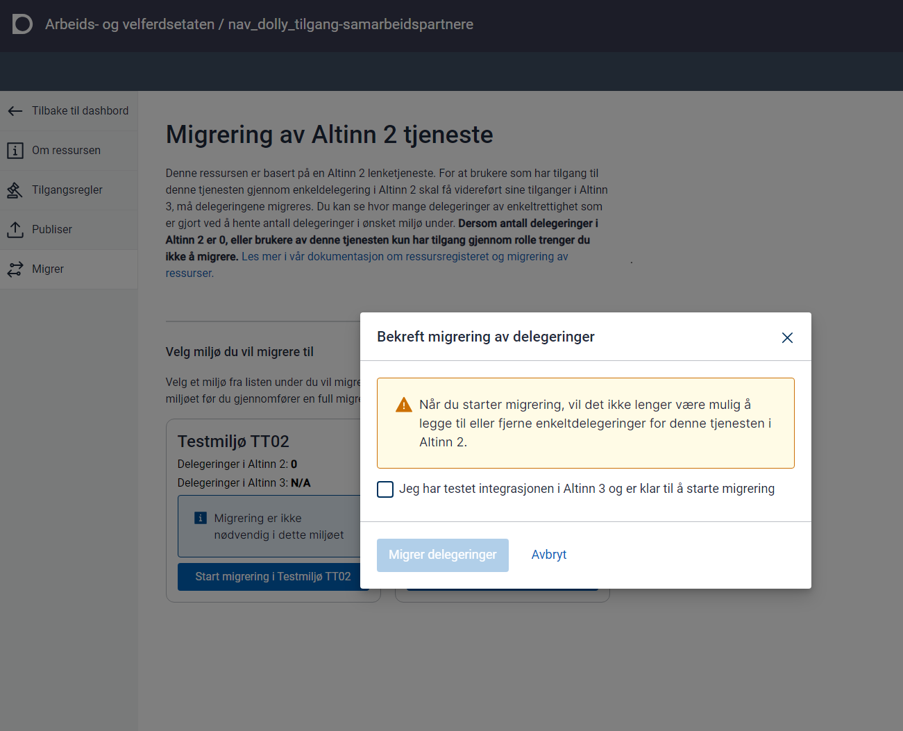 Use this option if you need to migrate existing delegations from an Altinn 2 service so they also apply to the new resource in Altinn 3.