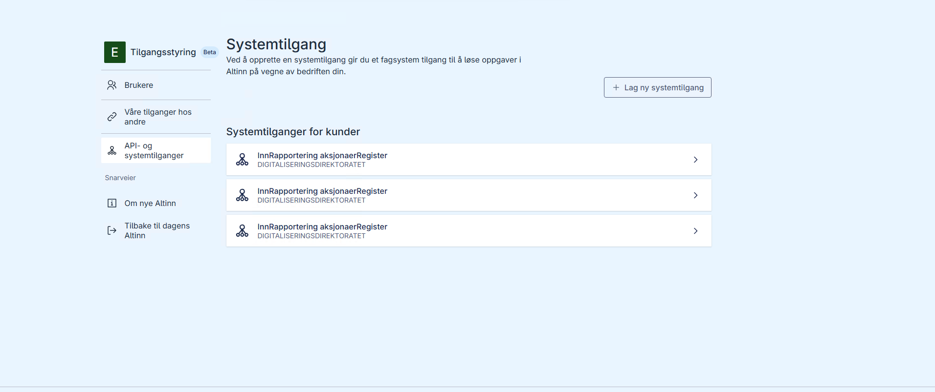 Information about rights is obtained from the service owner or via the Altinn API. The service owner must communicate requirements clearly. - Configure these rights in the system register so that system users can be granted the necessary rights per customer.