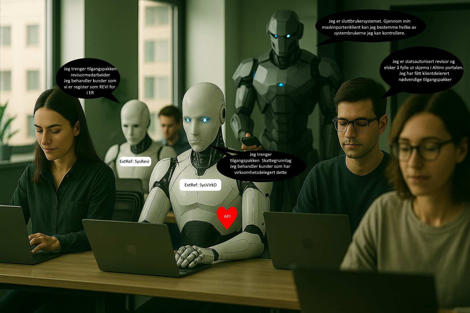 Consequence: the end-user system must handle local authentication and authorization so that only authorized employees get access to functionality that calls Altinn on behalf of clients.
