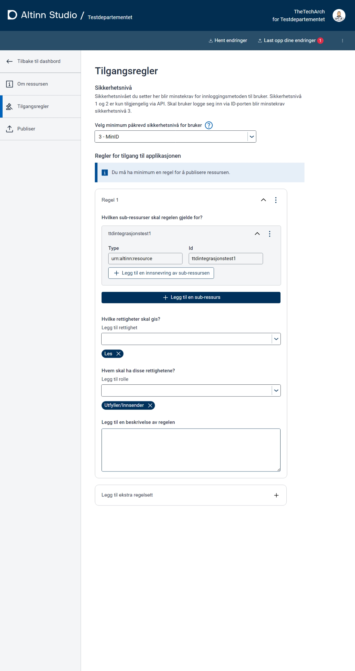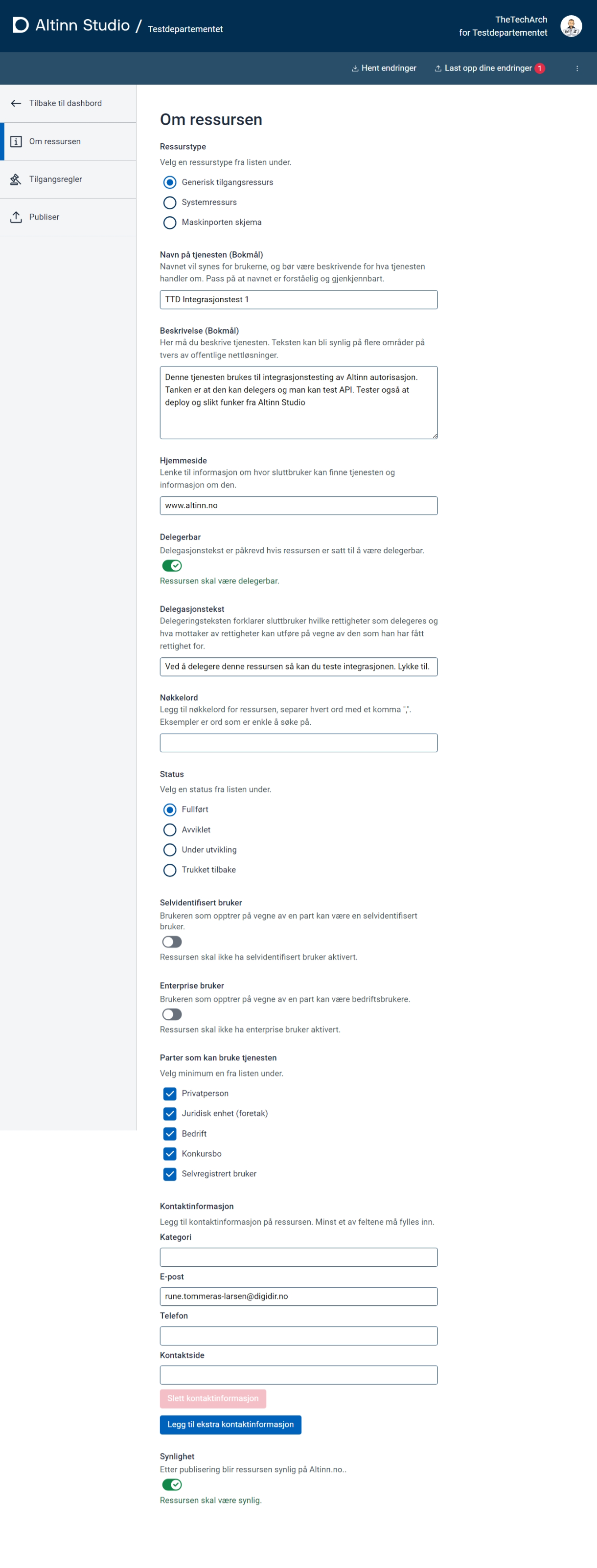 | Resourcetype | Type of resource. | Tilgangsstyring | Mulige verdier: Systemresource, MaksinportenSchema, GenericAccessResource | Yes |