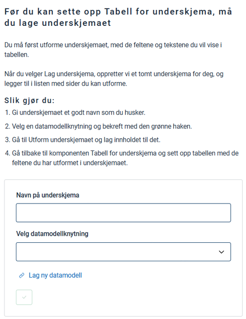 Når du legger til tabellen, får du en veiledning i et eget vindu. - Lag underskjemaet